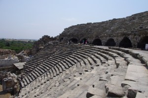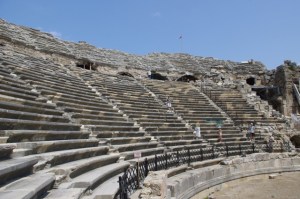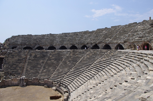 1. I’m not sure of all of its uses. It did hold as many as 15,000 people. It was built in 2 a.d. and the ochestra section was added in 3 a.d. At that point, they did have gladiator events. By 5 a.d., it was used for open-air Christian assemblies.