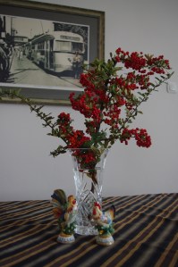 Last night, I had my husband help me sneak these nice berries for a center piece. They have big thorns – so I didn’t want to do it!