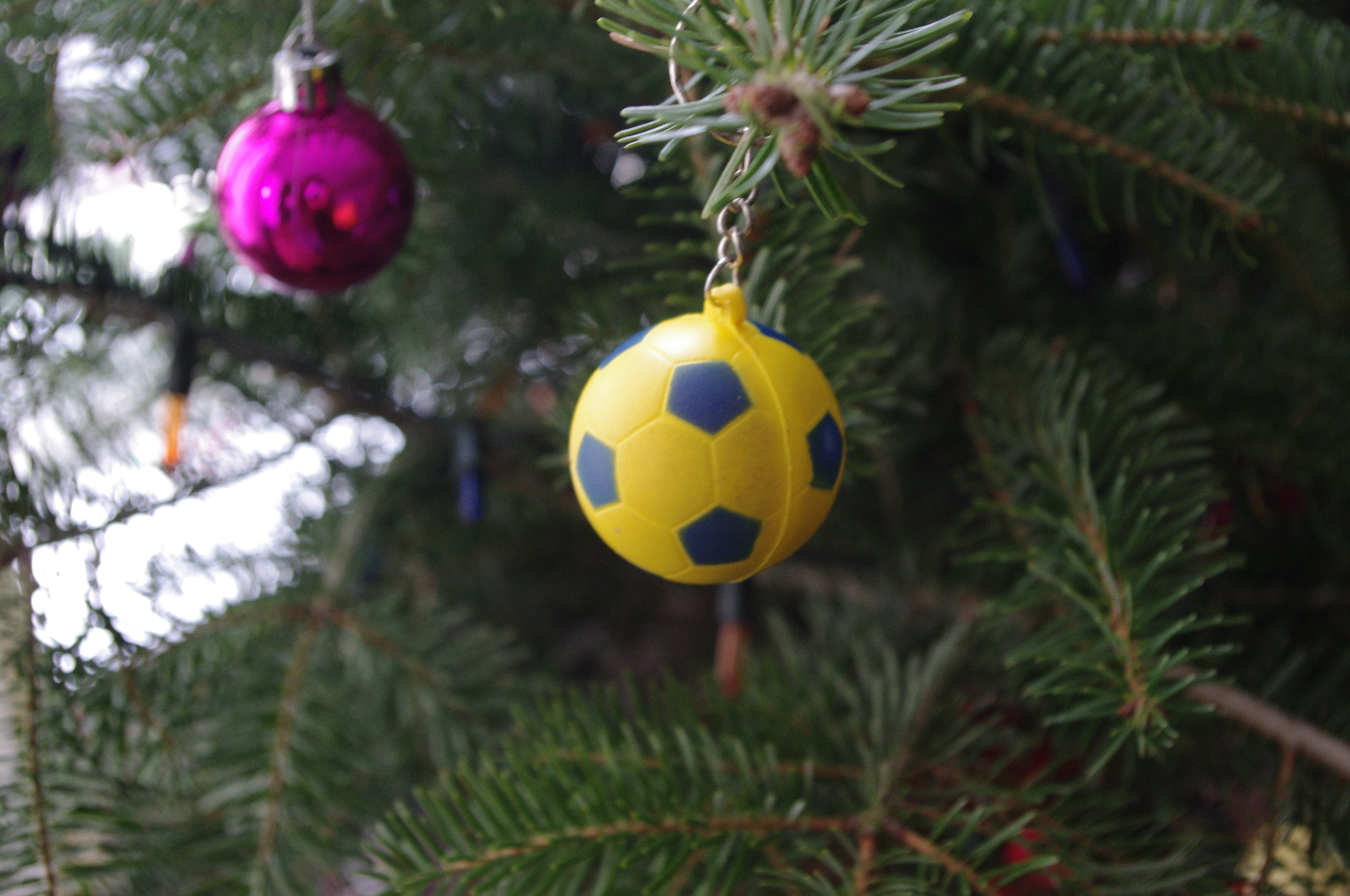 In the late afternoon, I took her to the pazar in 100.Yil.  We enjoyed the atmosphere of men yelling “Abla” (big sister) at us as they tried to force their fruits and vegetables on us.  We bought a few things, including a keychain with a dangling soccer ball to hang on our Christmas tree.  I thought that would make my husband very happy.  Unfortunately, it was yellow and blue, the colors of the Fenerbahce team!  Oops!  Wrong team.