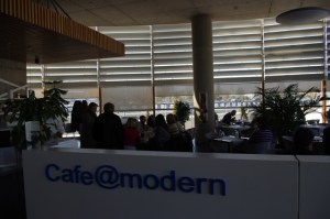 The café@modern is open to the public. It boasts an array of items from Turkish classics like manti to highly-piled Caesar salad, pizza, wraps and cheesecake. Alcoholic beverages are also served. The menu items are reasonably priced and very tasty. Don’t let them fool you though! We were told the wraps were large and should be shared. The wraps, although seemingly big, are not stuffed full to the edges. So if you go there hungry – as I did – be sure to order your own!
