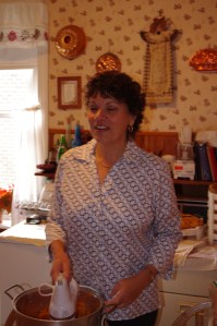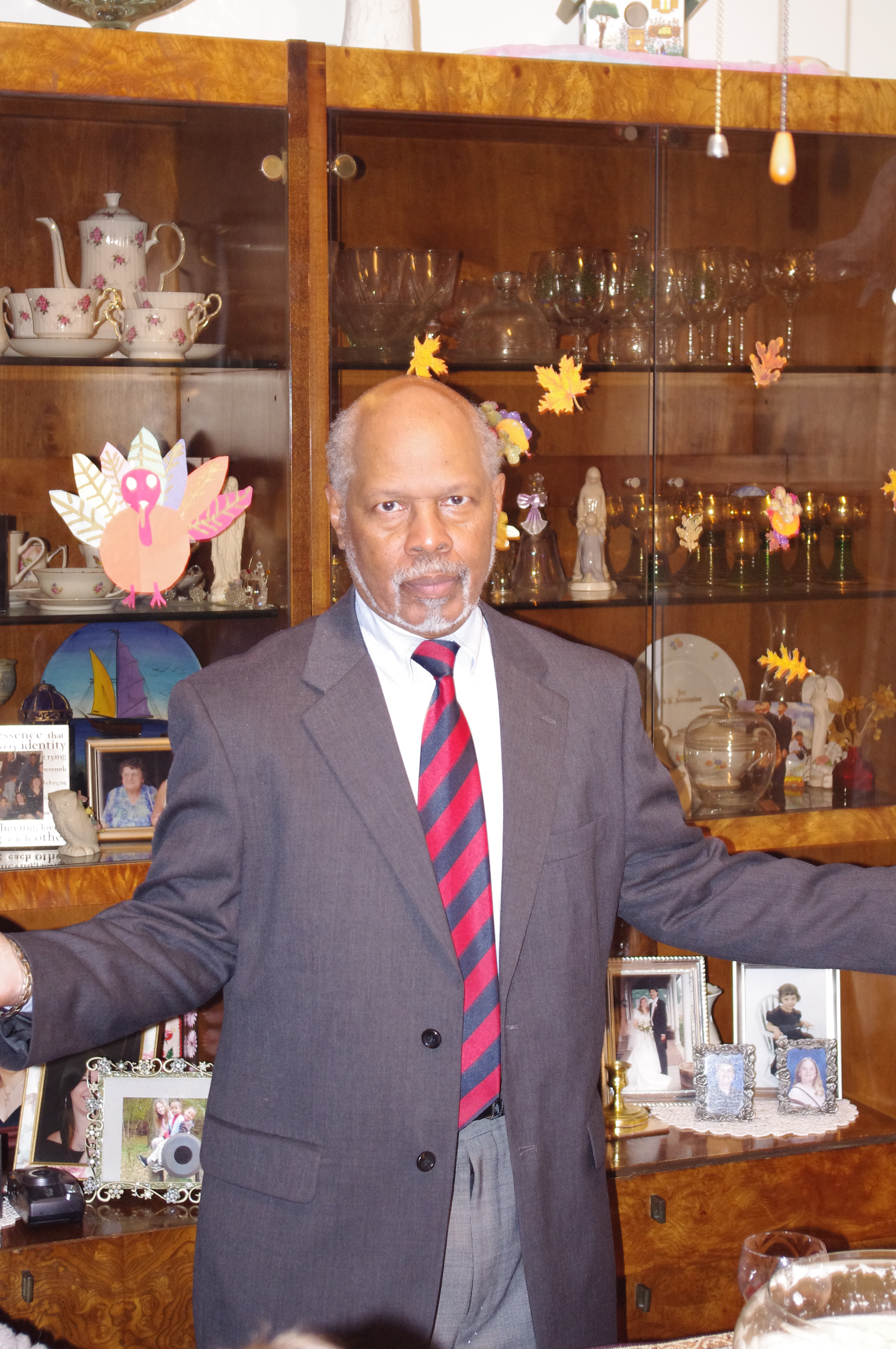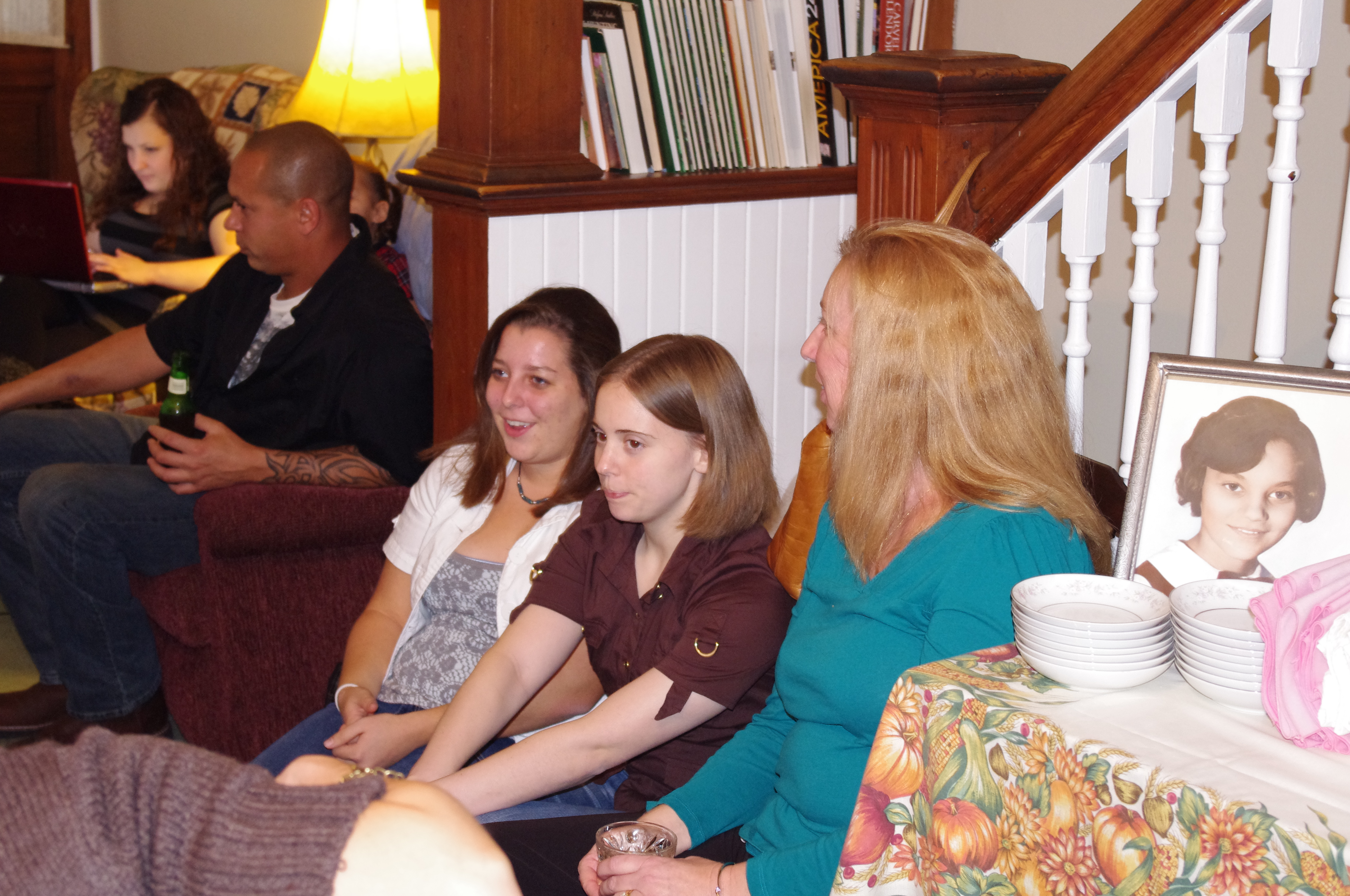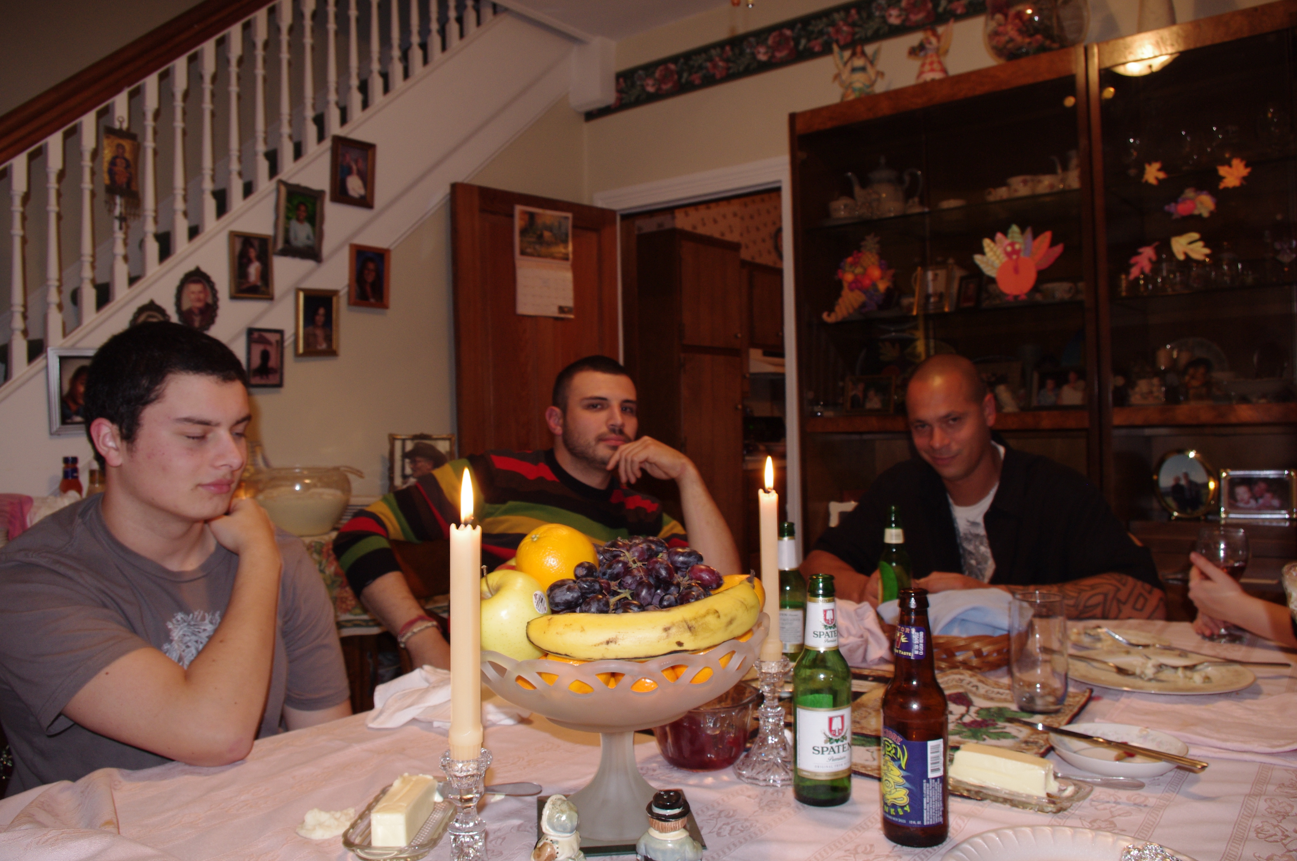 Then I keep prepping and cooking, all the while cutting one-inch slices of pumpkin pie and swallowing them whole! We set the tables, using two very large tables that spread from the dining room into the living room.