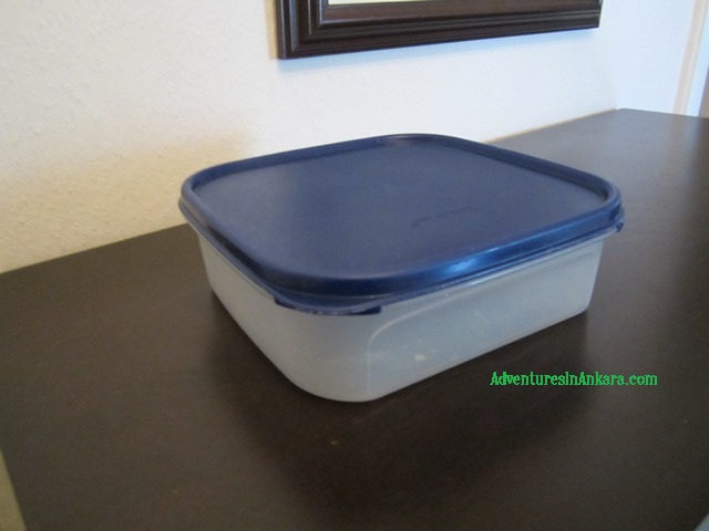 I spent this past weekend at my brother-in-law’s home in Kayseri.  My mother-in-law was there too.  She spent the weekend cooking our favorite treats.  Lo and behold, out of her bag, my Tupperware appeared!  I was not aware that she had it, but here it was, and in Kayseri.