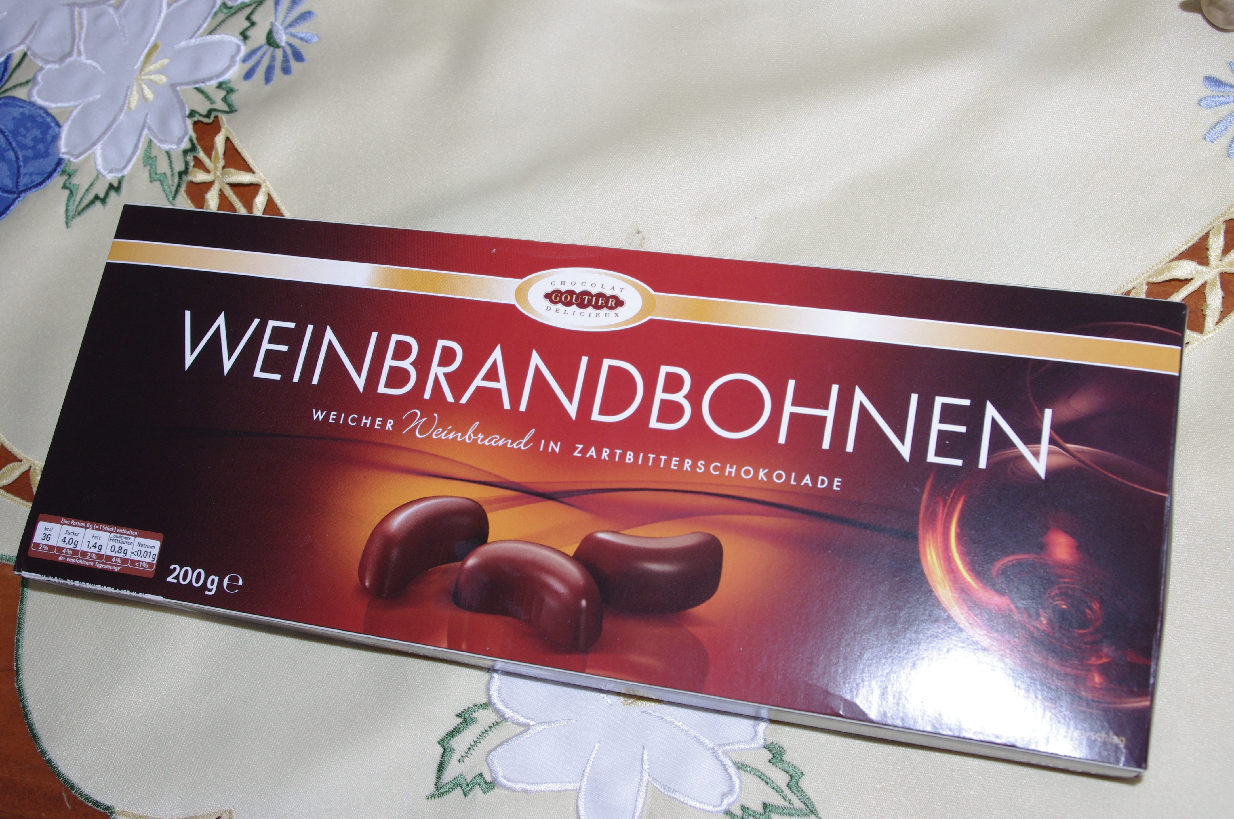Don’t worry about me. Being alone never bothers me too much. And besides, I also did a little chocolate shopping while in Germany. At one Euro each, I couldn’t resist buying six boxes of Weinbrand Bohnen – dark chocolate filled with brandy (or as we know them in the Henson family, Brandy Candies!)
