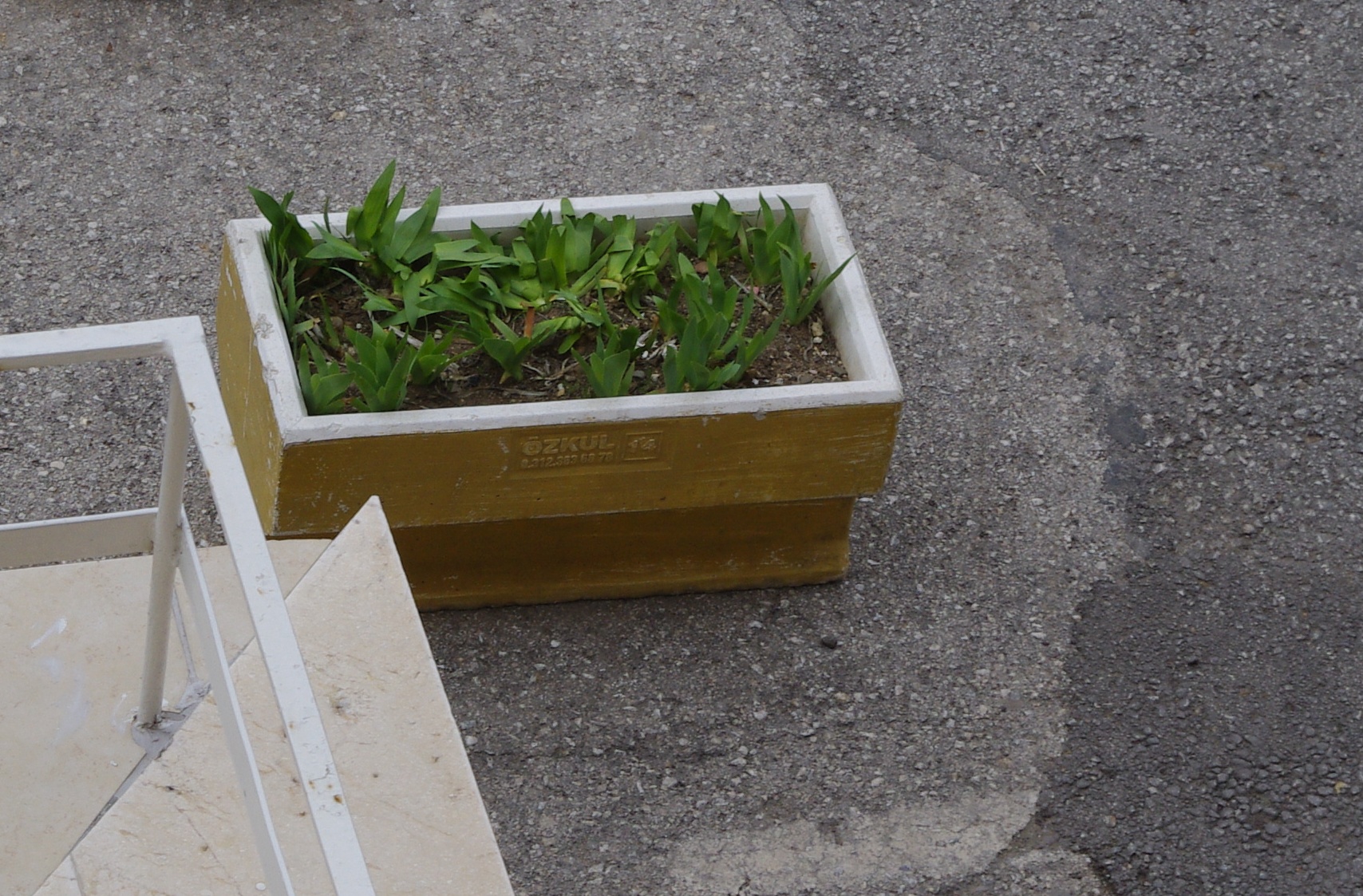 I couldn’t resist taking this photo.  This is the planter in front of my building.  The caretaker does little with our building, but these irises come up every year regardless.  They were about 6″ inches tall before this woman decided to plant her big fat butt in the middle of them!  And don’t feel sorry for her, there is a park 20 yards away, benches in the other direction, a lovely waiting room in the hospital two doors down, and plenty of cafes!