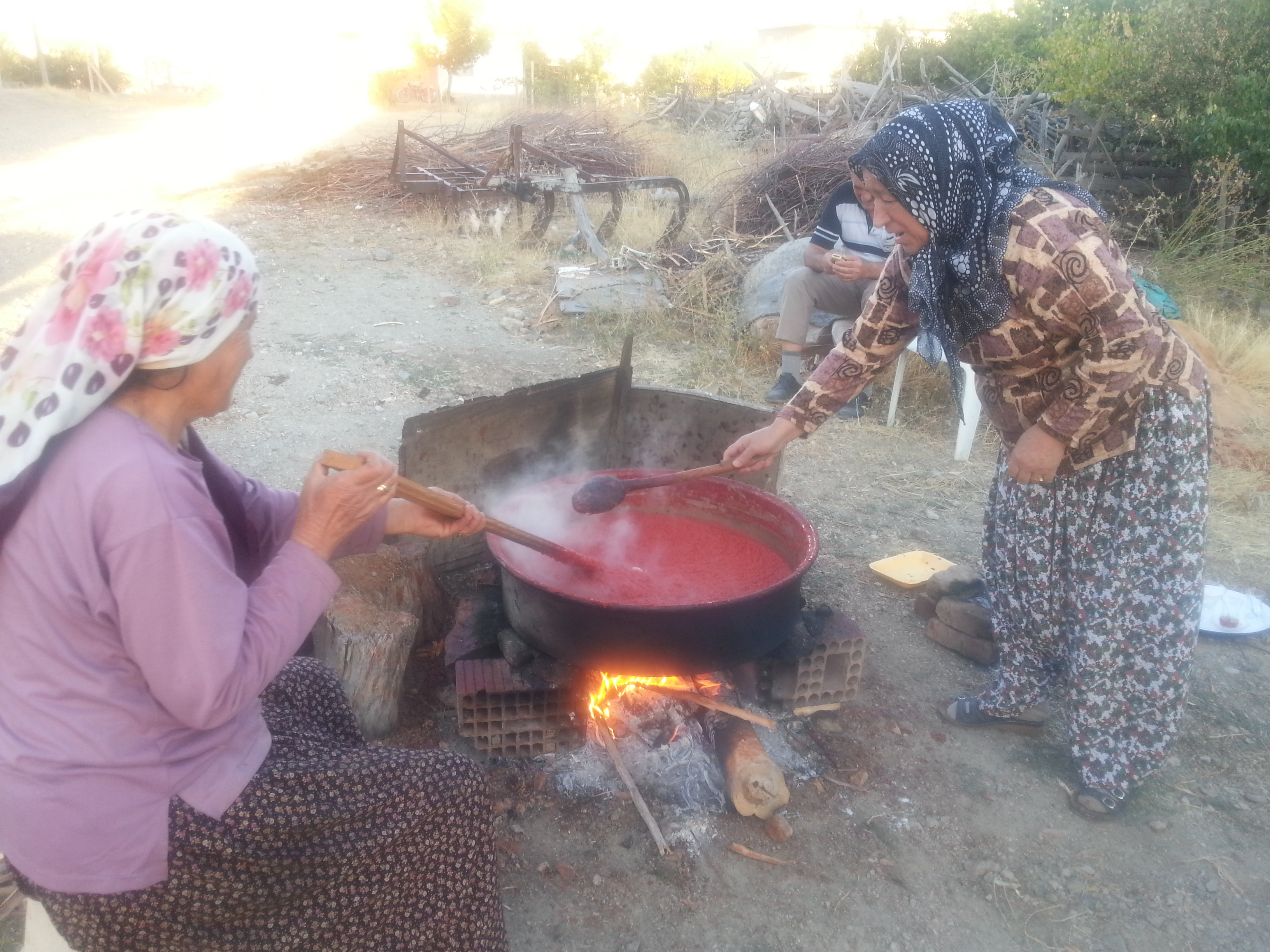 Cooking up 100kg of tomatoes in Akyurt! That was some good sauce!