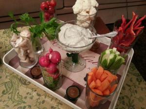 Candle lit Veggie Tray with Blue Cheese. Not pictured? An absolutely yummy cheese selection by Beyza.