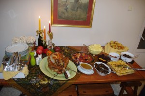 This year, Baris & I agree that we are very thankful for our wonderful friends.  We are both lucky and are grateful that many of them could join us last evening.  We also specifically thank that group for the appetizers, side dishes & desserts, for the wine, flowers & gifts, for the huge help in the kitchen and in carving the turkey, and for an evening full of laughter and happiness.