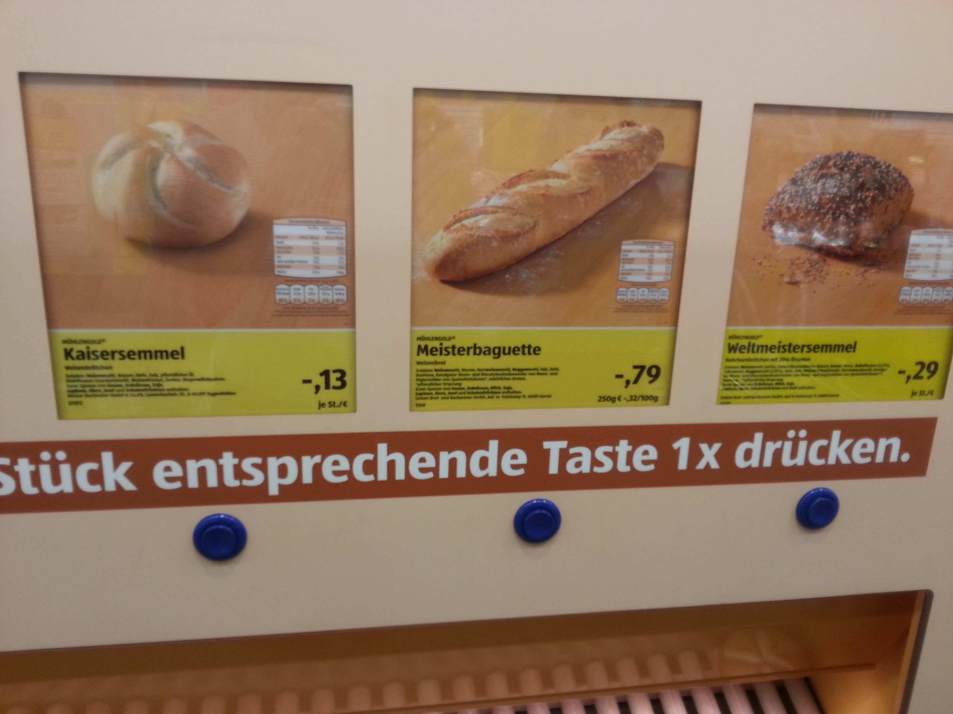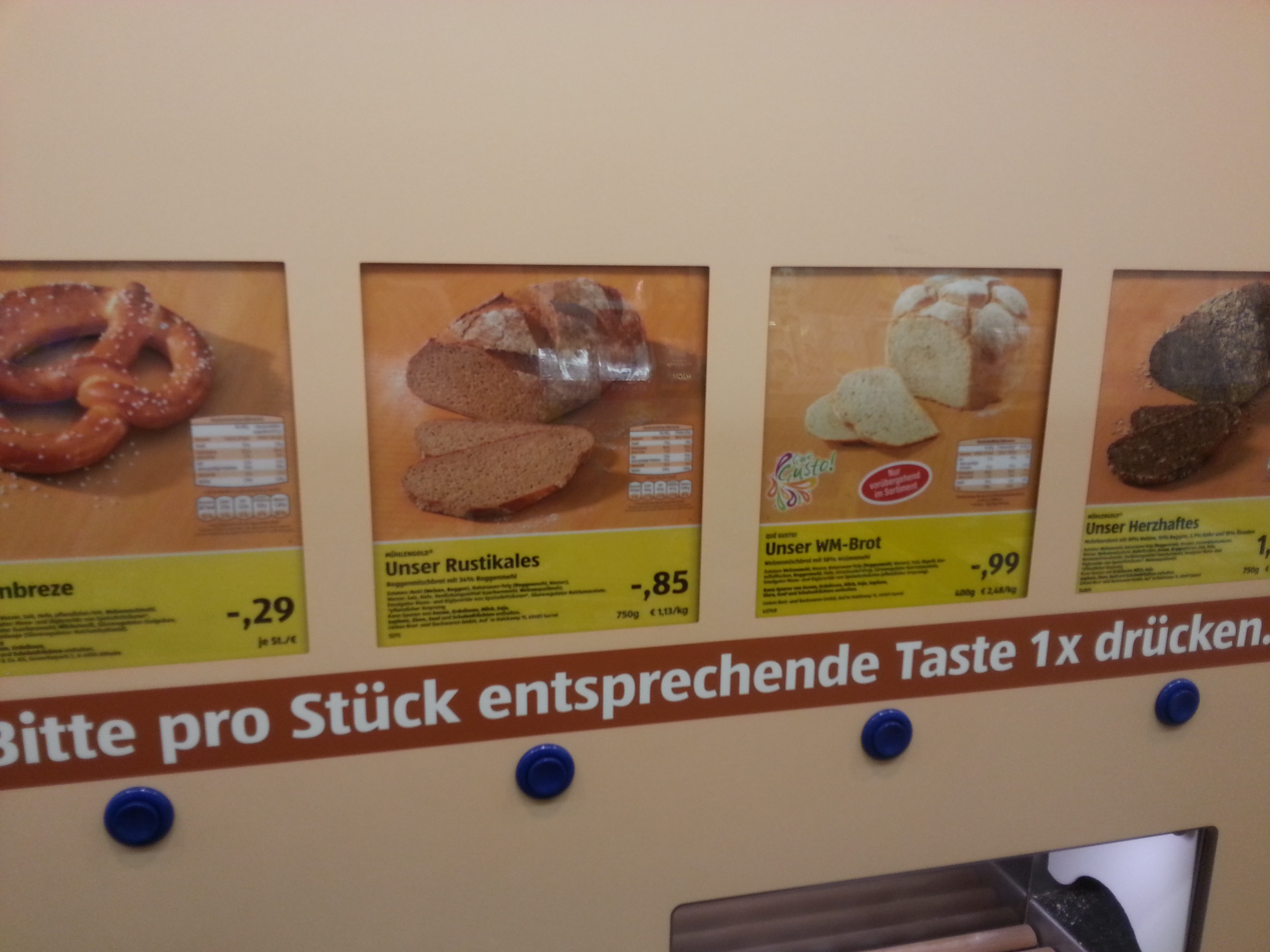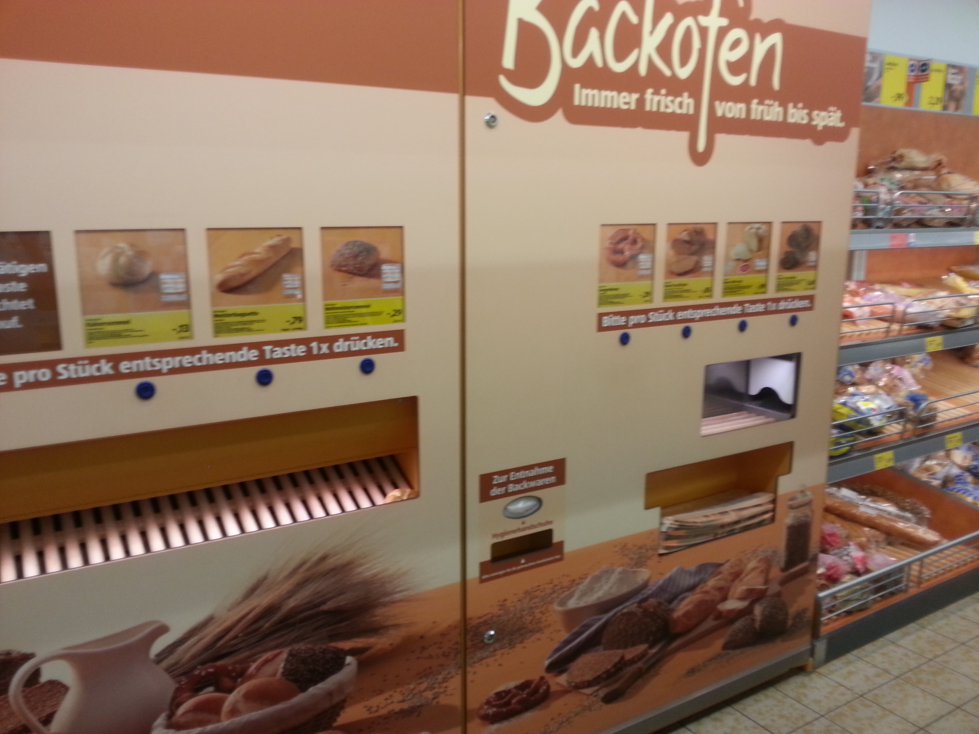 Each time I visit Germany, I find something I have really never seen before – nothing like I have seen before!  This time it was the bread machine at the market.  Freshly baked bread from a machine!
