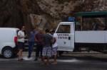 One would have thought they were done.  But no.  There was still the drive back to town … and a pit stop.  Both jeeps pulled over at the first crime scene, the beach between Kas and Kalkan, at the foot of a small gorge.  While many made the way down to the water for an evening swim, I stayed with the crew on the side of the road and enjoyed watermelon.