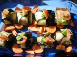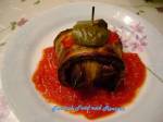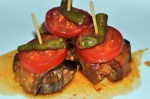 • And the kicker?! – Islim Kebab (Patlican dilim kofte)!  That’s a Turkish meatball, wrapped in thin slices of eggplant.  He skewered them with a toothpick topping them with a slice of tomato, a leaf of home-grown basil, and a  home-grown cherry tomato!