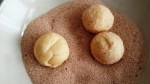 - Put the cinnamon and sugar mix in a flat bowl or on a plate. Roll each ball into the mix, covering the ball in cinnamon and sugar.