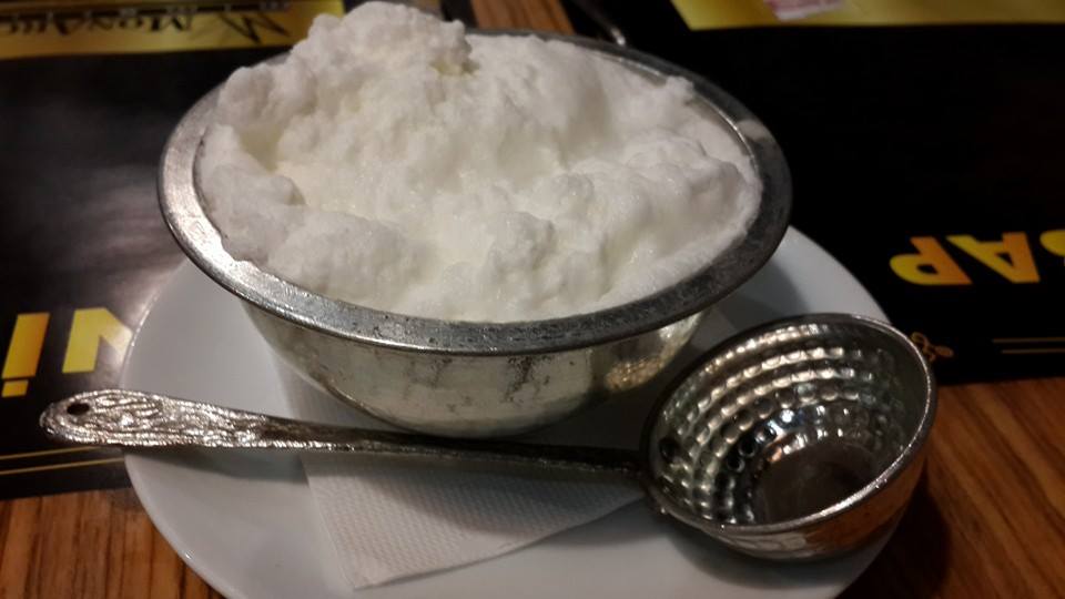 A yogurt drink (similar to the Indian lassi), goes well to wash down spicy hot meats!