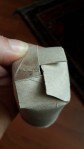 I decided to make small containers – albeit larger than my originals – out of toilet paper tubes. I cut four slits at the bottom and folded them over to close it.